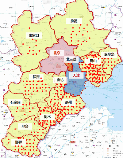 在全市層面,按照《北京城市總體規(guī)劃(2016年-2035年)》要求,今后北京將突出減量發(fā)展,壓縮生產空間規(guī)模,到2035年,城鄉(xiāng)產業(yè)用地占城鄉(xiāng)建設用地比重由目前的27%下降到20%以內。在城市副中心層面,根據《北京城市副中心控制性詳細規(guī)劃(街區(qū)層面)(2016年-2035年)》,城市副中心及通州區(qū)產業(yè)用地規(guī)模將大幅壓縮,到2035年,城市副中心產業(yè)用地規(guī)模將由24平方公里減少到15-17平方公里,通州區(qū)產業(yè)用地規(guī)模將由90.75平方公里減少到55平方公里。北京市高精尖產業(yè)的發(fā)展,以及城市副中心的建設,亟需在更大空間尺度、特別是周邊區(qū)域統(tǒng)籌和優(yōu)化產業(yè)發(fā)展空間。北三縣與北京市、特別是通州區(qū)毗鄰,以北三縣為重點,將有效拓展北京高精尖產業(yè)發(fā)展空間和通州區(qū)建設城市副中心的腹地空間,緩解北京高精尖產業(yè)發(fā)展空間不足的約束。
