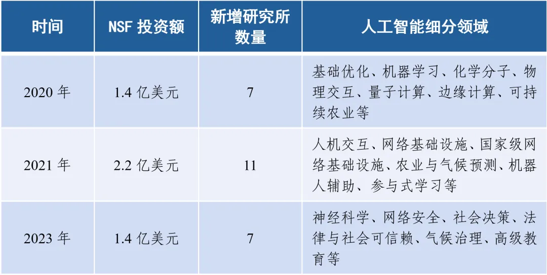 2020年起至2024年3月,美國(guó)國(guó)家科學(xué)基金會(huì)共出資5億美元建設(shè)25家國(guó)家人工智能研究所,專注于氣候、教育、醫(yī)療、網(wǎng)絡(luò)安全等人工智能應(yīng)用領(lǐng)域。國(guó)家人工智能研究所由美國(guó)頂尖高校領(lǐng)導(dǎo),成為人工智能科學(xué)研究的前沿陣地和推動(dòng)人工智能技術(shù)各領(lǐng)域應(yīng)用的中堅(jiān)力量,這種合作模式加強(qiáng)了科研的深度和廣度。