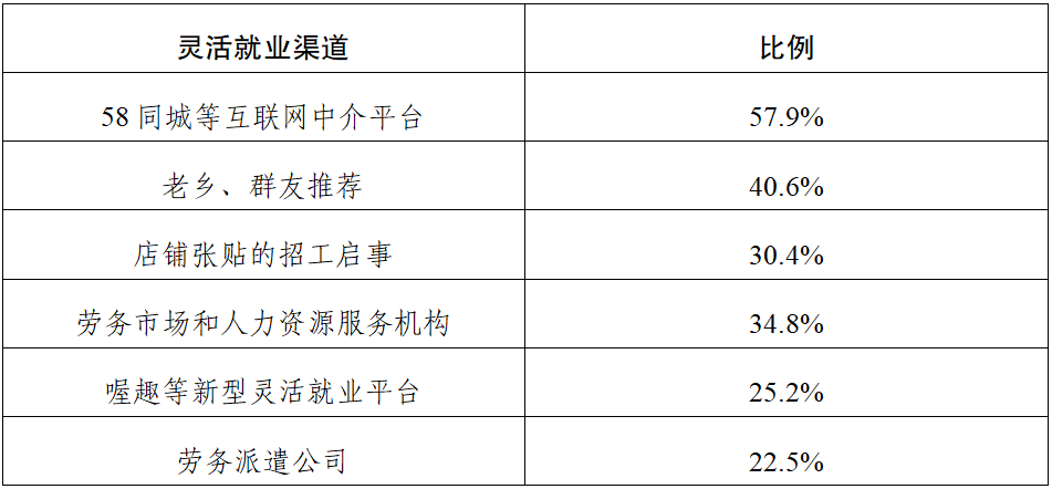 就業(yè)渠道趨于多樣化。據(jù)美團研究院對商戶及從業(yè)者的調(diào)研結(jié)果發(fā)現(xiàn),勞動者的就業(yè)渠道呈現(xiàn)多樣化、網(wǎng)絡(luò)化趨勢,57.9%傾向互聯(lián)網(wǎng)中介平臺,40.6%傾向老鄉(xiāng)、群友推薦,25.2%傾向新型靈活用工平臺(表1)。此外,企業(yè)間合作也帶來人力資源的靈活流動,如盒馬通過“共享員工”形式租用西貝等餐飲行業(yè)人員,在疫情期間助力餐飲業(yè)人員穩(wěn)定就業(yè),緩解自身運力緊張。