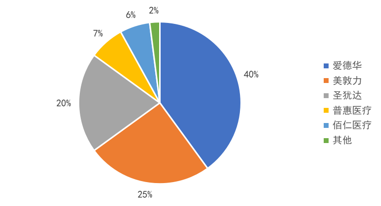 腦血管介入器械(又稱神經介入器械)是指治療中樞神經系統血管疾病的微創醫療器械。美敦力作為全球腦血管介入器械行業的引領者,進入中國市場20余年,以其全球領先的高技術產品占據國內60%市場份額。而國內品牌如微創神通、心瑋醫療、沛嘉醫療、歸創通橋等多以生產微導管類、微導絲類等通路類產品為主。