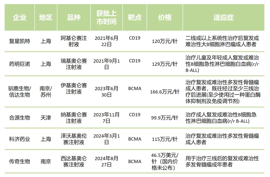 表2 運(yùn)用合成生物技術(shù)的國(guó)內(nèi)獲批的CAR-T產(chǎn)品